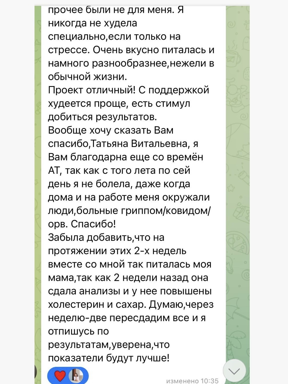 В чате в виде файлов (останутся у вас навсегда) будут выложены списки продуктов, конструктор меню, подборка функционального питания, нутритивная поддержка.